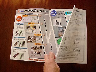 従来は”商品カタログ”と”注文書”は別の印刷物でしたが、本来商品カタログは注文を促すためのツールです。この2つの印刷物をBF帳合機(コレーター)の「線糊加工」にて一体化いたしました。